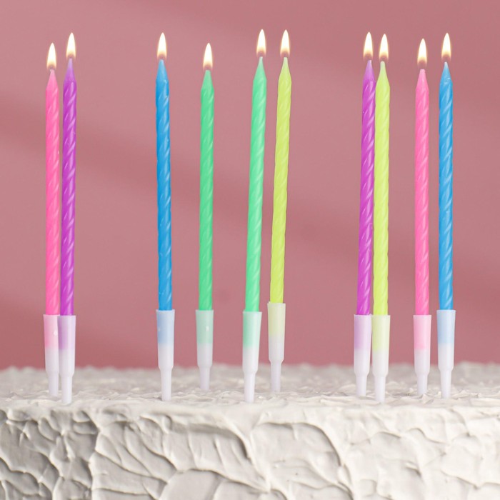 Свечи для торта "Неон" 10 шт,разноцветные 14см(1уп.) - купить в Ставрополе по выгодной цене в интернет-магазине «Кондитер PROFI». Широкий ассортимент качественной кондитерской продукции оптом и в розницу с доставкой по России. Индивидуальный подход, пищевая печать.