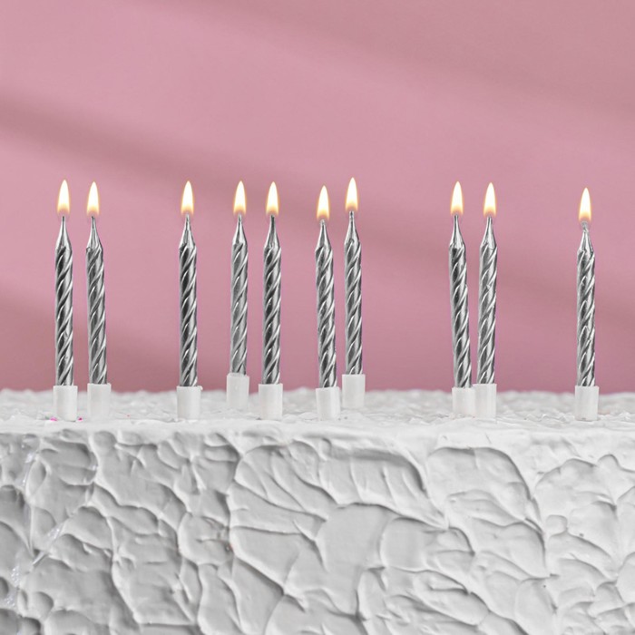 Свечи в торт "Спираль" 10 шт средние 7см, металлик - купить в Ставрополе по выгодной цене в интернет-магазине «Кондитер PROFI». Широкий ассортимент качественной кондитерской продукции оптом и в розницу с доставкой по России. Индивидуальный подход, пищевая печать.