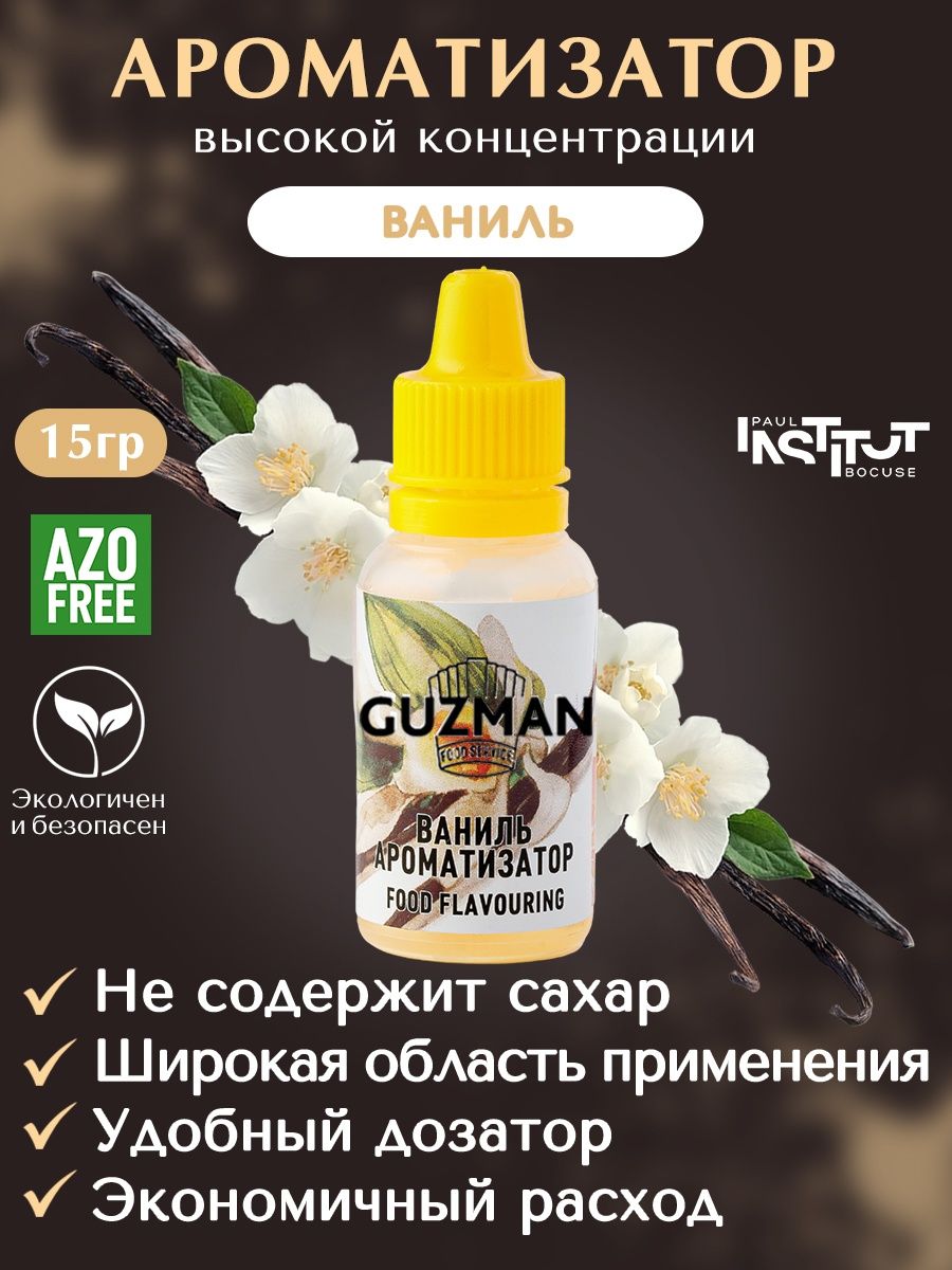 Ароматизатор GUZMAN "Ваниль" (Флакон 15мл) - купить в Ставрополе по выгодной цене в интернет-магазине «Кондитер PROFI». Широкий ассортимент качественной кондитерской продукции оптом и в розницу с доставкой по России. Индивидуальный подход, пищевая печать.