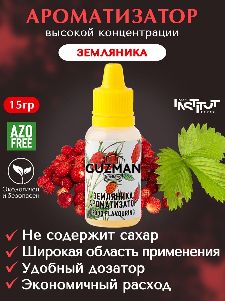 Ароматизатор GUZMAN "Земляника" (Флакон 15мл) - купить в Ставрополе по выгодной цене в интернет-магазине «Кондитер PROFI». Широкий ассортимент качественной кондитерской продукции оптом и в розницу с доставкой по России. Индивидуальный подход, пищевая печать.
