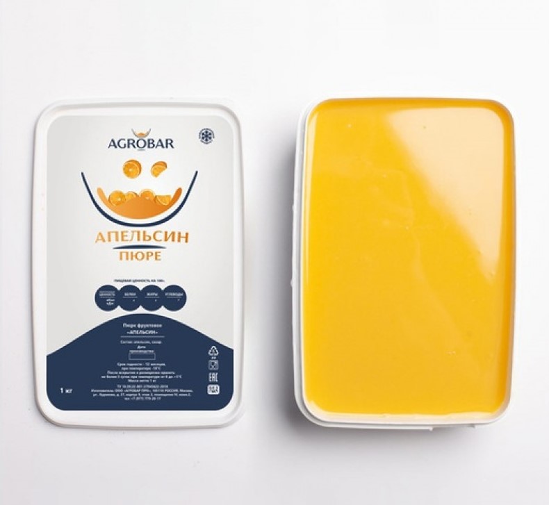 Пюре "АГРОБАР" АПЕЛЬСИН 90% фруктов, 8% сахара, Россия (1 кг.)